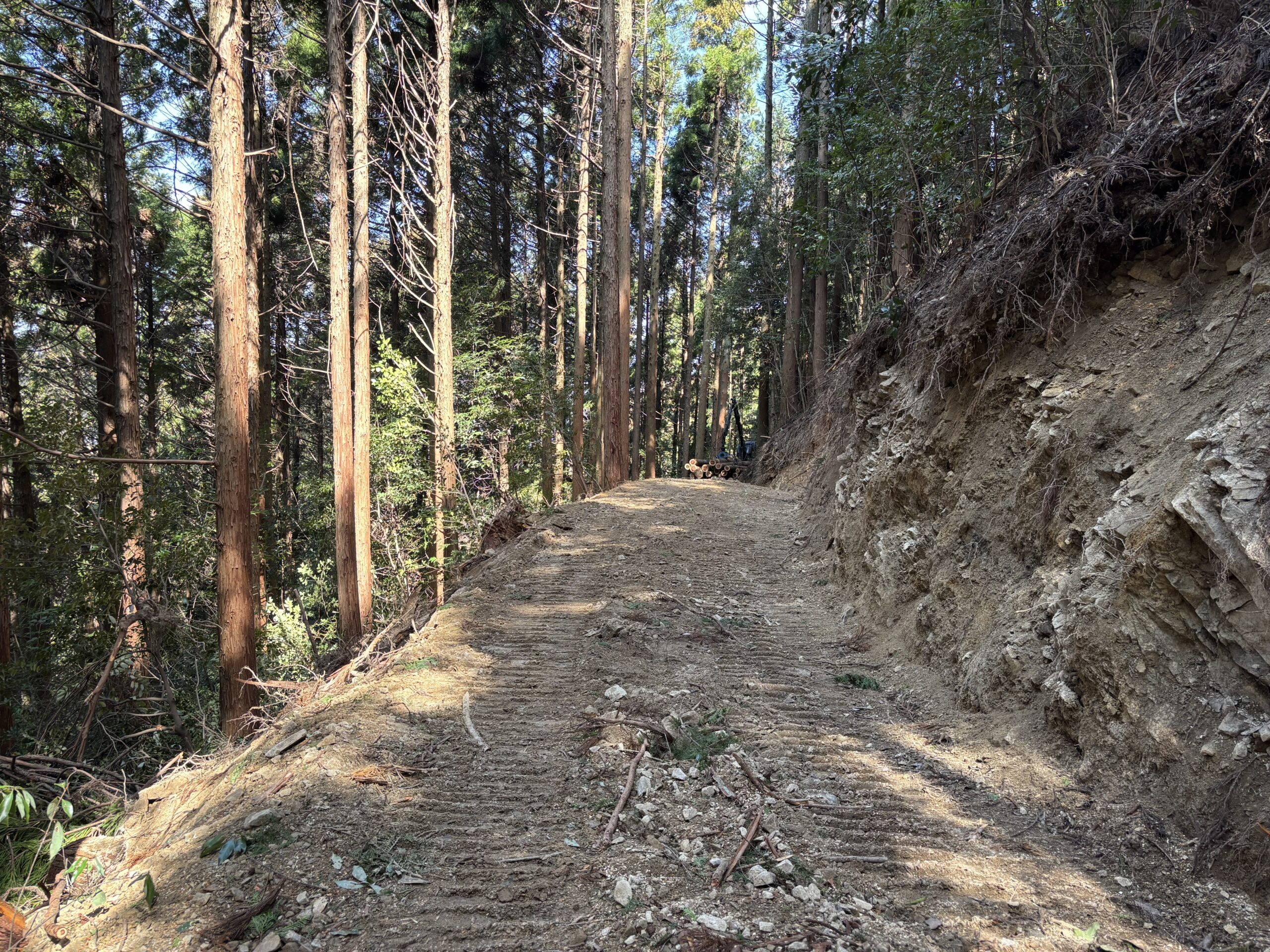 事前に山を歩いて作業道をどこにどのようなルートで開設していくか調査をするのですが、なかなかの急斜面でしたのでどのようになるか少し心配しておりました💦